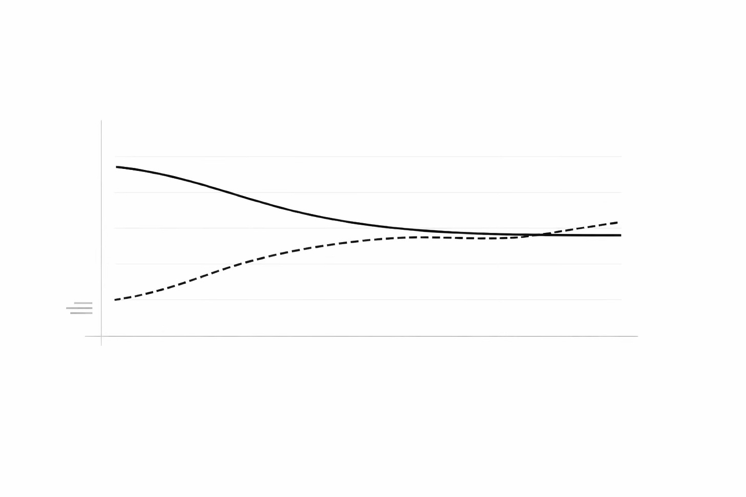 The solid line is peer-reviewed research. The dashed line is data mining. They converge.